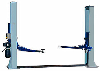 雙柱式舉升機屬于一種特殊液壓升降機,有對稱式和非對稱式兩種。對稱式舉升機四根臂的臂長大致相等,這樣使得汽車中心(或質心)處于立柱的中間位置,對于皮卡和箱式貨車等類型的汽車的日常維修來說這種對稱式舉升機可能是很好的選擇。但是對于一些柱間寬度不夠大的對稱式雙柱式舉升機來說,汽車舉升后不能打開車門是一個很大的缺點。非對稱式舉升機的立柱向后旋轉了一個角度(大約30°),并且前臂比后臂稍微短一些。當把汽車停放到這種非對稱式的舉升機適當位置時,車的位置就向后移動了一些,因此,我們就很容易地從車門進出。而且,這種非對稱式舉升機轉動的立柱,可以確保車輛的重心安全地定位在立柱之間。